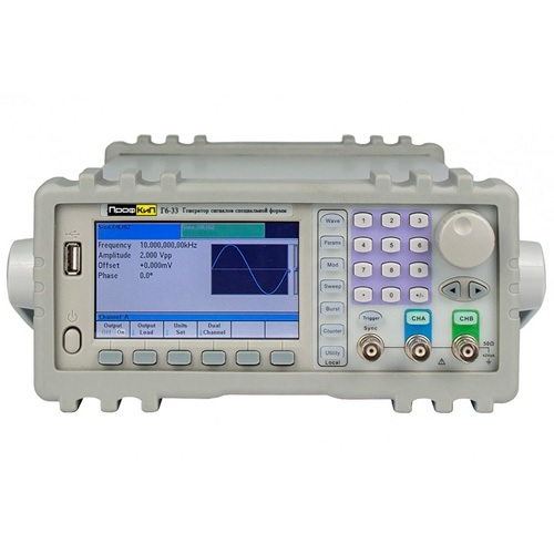 Генераторы сигналов специальной формы двухканальные ПрофКиП Г6-33 созданы для воспроизведения высокостабильных по частоте сигналов синусоидальной, прямоугольной, треугольной, импульсной формы, а так же шумового сигнала и напряжения постоянного тока. Генераторы воспроизводят так же сигналы произвольной формы, имея 50 заводских предустановок, и возможность программирования формы выходного сигнала оператором.