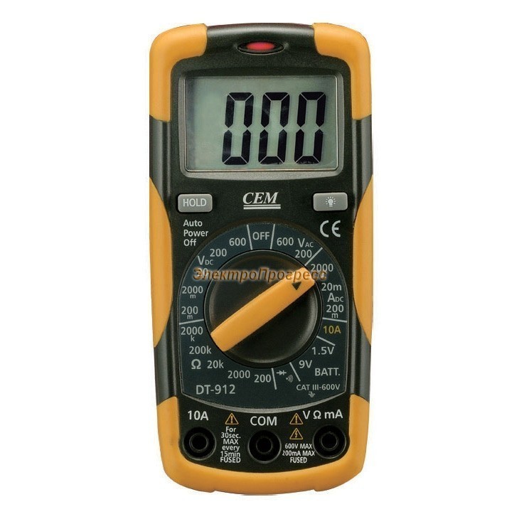Мультиметр CEM DT-912 принадлежит к группе бюджетных аппаратов и оснащен необходимым набором функций для базовых измерений. Благодаря этому он прекрасно подходит для повседневного использования с целью проверки разнотипного электрооборудования.