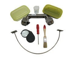 Комплект дефектоскопа МД-6К содержит: контрольный образец с дефектограммой, лупу, мерку для измерения количества порошка для суспензии, тросовую перемычку, магнитопровод шарирнирный и другие приспособления.